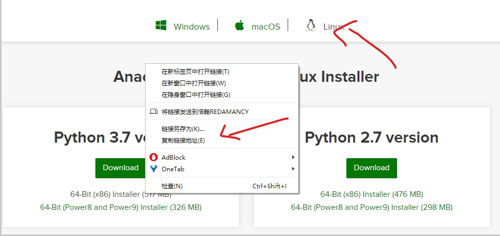 打开Anaconda下载地址,复制下载链接,在centos7中使用wget下载,也可以在本地下载完上传到Centos中
